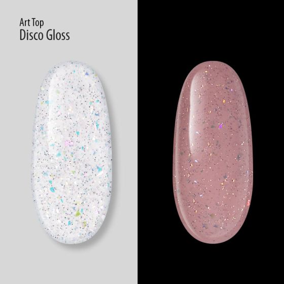Art Top PNB, Disco Gloss je razkošen refleksivni zaključni premaz, bogato nasičen z holografskim sljudam.