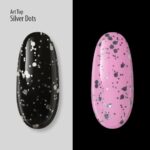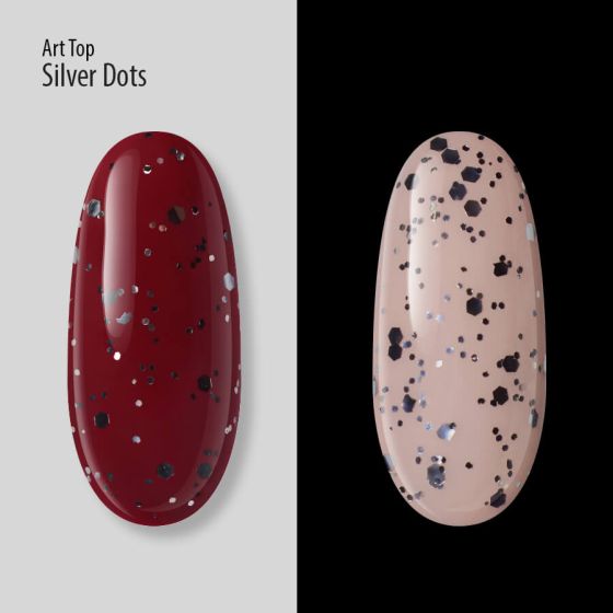 Art Top PNB, Silver Dots je izbira za vse prave modne navdušenke. Ta zaključni premaz s srebrnimi šesterokotniki različnih velikosti vaši manikiri ne doda le posebnega sijaja in izraznosti, temveč tudi privlačnost.