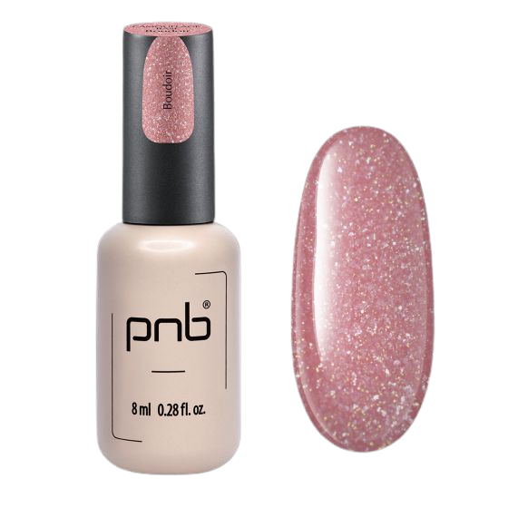 Camouflage Base PNB, Boudoir je topel bež odtenek gumijaste baze z drobnimi delci srebrne folije. Ta odtenek vas z enim pogledom popelje v atmosfero prefinjenega budoarja, ženskih skrivnosti, privlačnosti in harmonije. Ta premaz je odlična alternativa klasični "nude" manikiri.