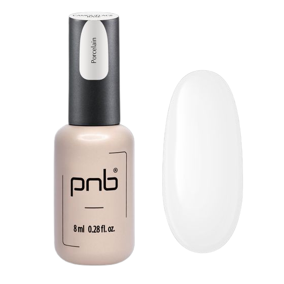 Camouflage Base PNB, Porcelain je elastična, mehka mlečno obarvana gumijasta baza. Zaradi svoje teksture odlično krepi in gladi nohtno ploščo, pigmentacija pa popolnoma skrije vse pomanjkljivosti nohtne plošče ter jo tonira.