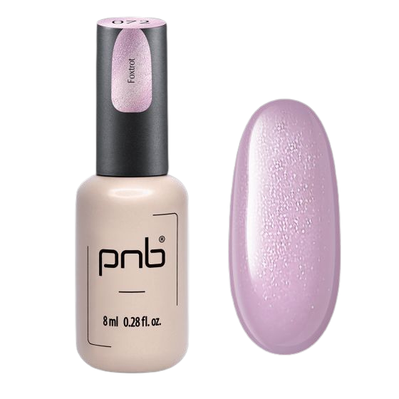 PNB 071 Foxtrot je nežen gel lak PNB z rahlo lila sijajem, srebrnim mikro sijajem, svetlim tonom in emajl strukturo z belim pridihom.