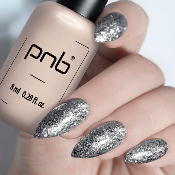 PNB 185 Silver je eden izmed najsvetlejših odtenkov v kolekciji glitter gel lakov “Star Way” PNB, ki ponuja kromiran metalni sijaj, zadržano in hkrati osupljivo sijoč. Z dovolj gostoto in enakomerno nanosno teksturo zagotavlja popolno pokritost v dveh plasteh.