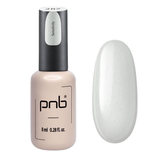 PNB 287 Sensitivity je brezhiben, zapeljiv in stiliziran odtenek zimsko bele prosojne barve z najmanjšimi sijajnimi delci; ta nežna barva bo razkrila vso vašo čutnost in vas zagotovo izstopala iz množice s svojo odsevno biserno pigmentacijo.