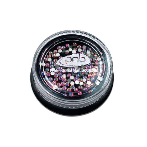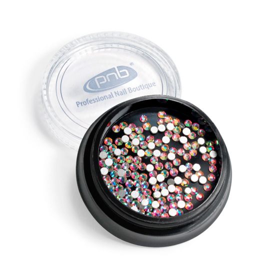 Rhinestones PNB, AB Crystals so prozorni okrasni kamni s posebnim barvnim premazom AB in se bleščijo v vseh barvah mavrice.